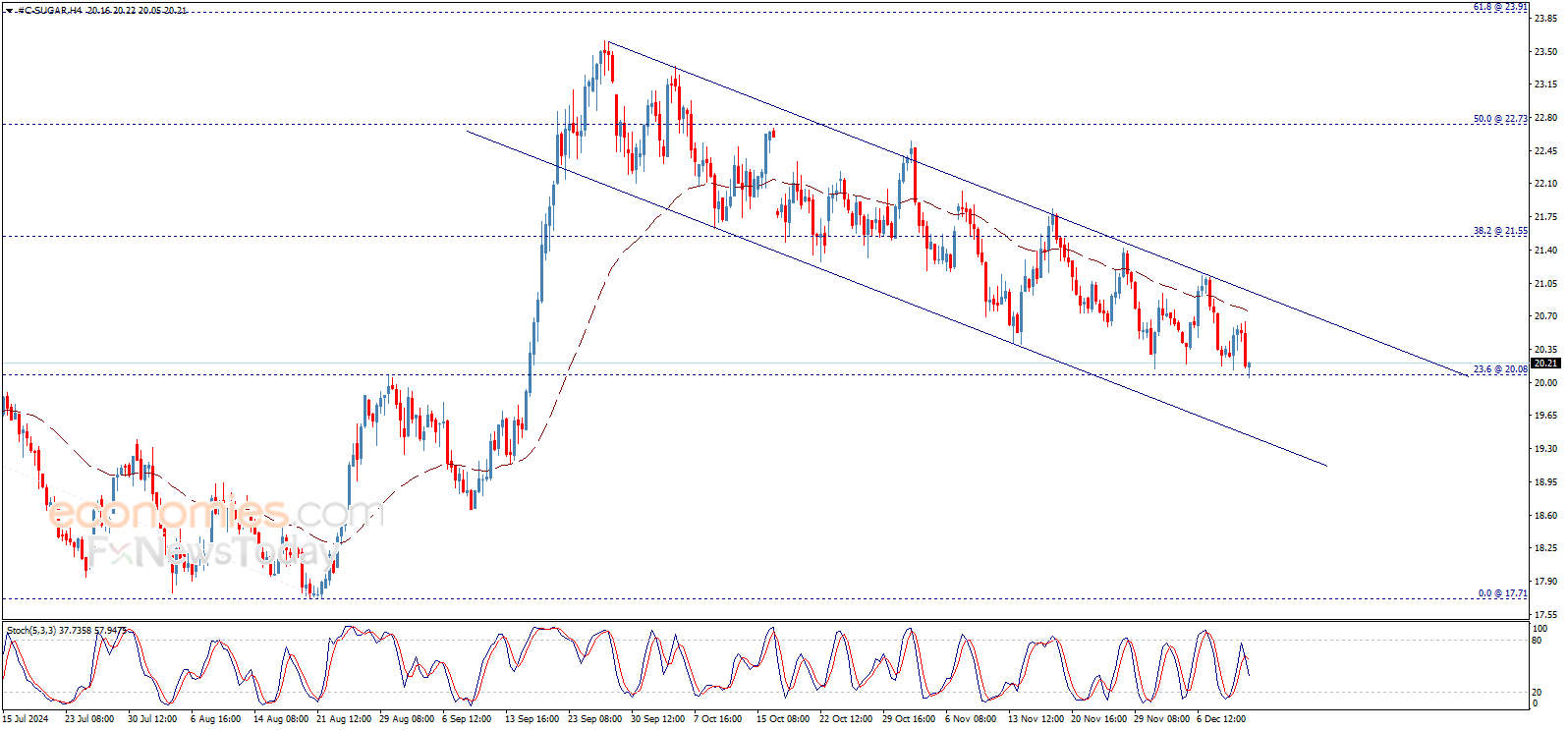 تمكّن سعر السكر من ملامسة هدفنا المنتظر عند 20.08$، ونلاحظ أن المؤشرات الفنية تقدّم إشارات سلبية تدعم فرص كسر هذا المستوى لفتح الطريق أمام استمرار الانخفاض على المدى اللحظي والقصير، مع الإشارة إلى أن الهدف التالي يصل إلى 19.40$.