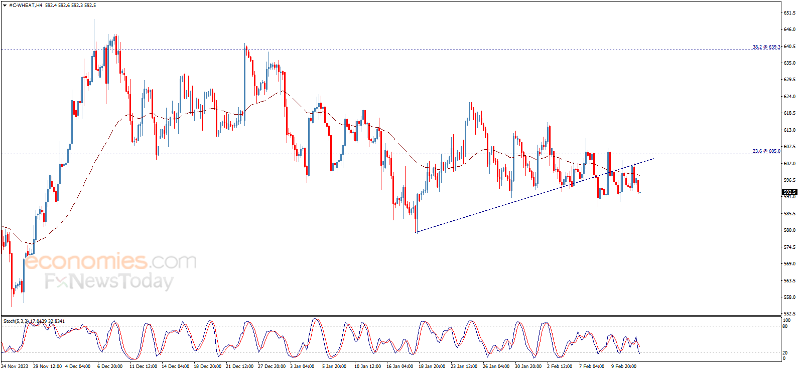 يظهر سعر القمح تداولات سلبية جديدة مع افتتاح اليوم ليبتعد عن مستوى 605.00، معززاً التوقعات باستمرار الاتجاه الهابط خلال الجلسات القادمة، والطريق مفتوح أمام تحقيق هدفنا الأول عند 580.00، ونرجّح تحقيق مزيد من الانخفاض والوصول إلى 560.00 على المدى القريب.