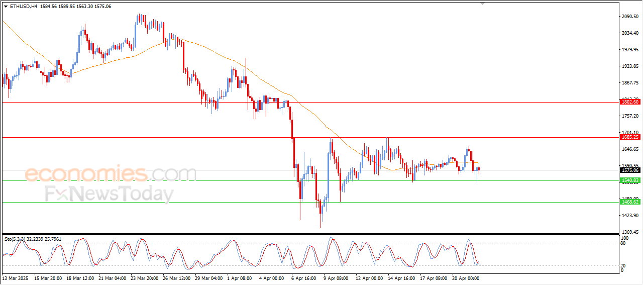 تراجع سعر الإيثيريوم (ETHUSD) بتداولاته اللحظية الأخيرة، بعدما شهد هبوط خلال تداولات أمس متخطياً لدعم متوسطه المتحرك البسيط لفترة 50، ما شكل ضغطاً سلبياً على السعر أوصله للاستناد لمستوى الدعم المحوري 1,540$، ليرتد منه ارتفاعاً بالتزامن مع بدء ظهور تقاطع إيجابي بمؤشرات القوة النسبية، بعد وصولها لمناطق شديدة التشبع بعمليات البيع، وذلك في ظل سيطرة الاتجاه التصحيحي الصاعد على المدى القصير.