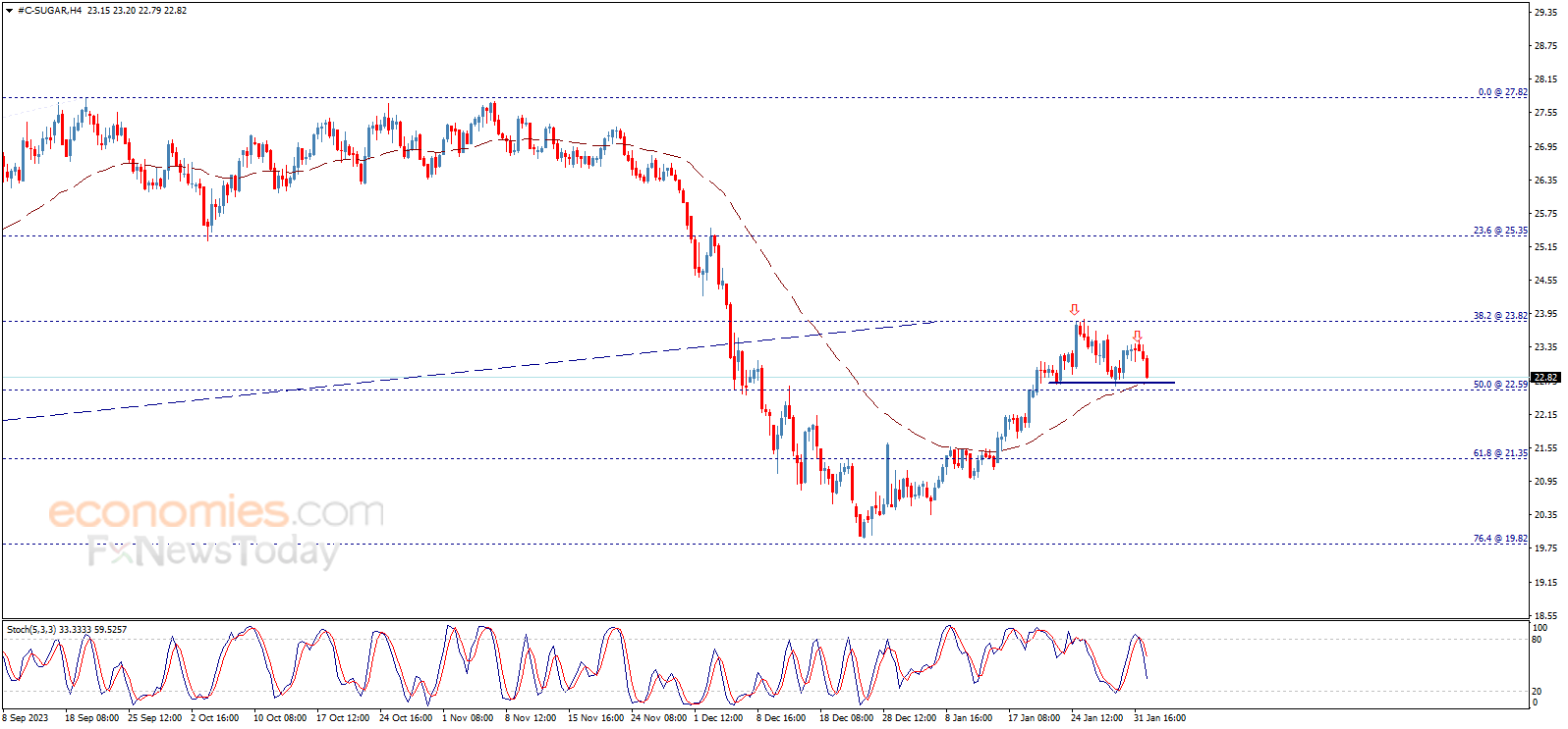 أنهى سعر السكر تداولات يوم أمس بسلبية ملحوظة ليقترب من الدعم المحوري 22.60، وبتدقيق النظر في الرسم البياني، نجد بأن السعر يشكّل نموذج قمة مزدوجة قد يدفع التداولات للتحوّل إلى الانخفاض، خصوصاً وأن مؤشر ستوكاستيك يقدّم إشارات سلبية واضحة الآن، بينما يحاول المتوسط المتحرك 50 دعم السعر ومنعه من تكبد مزيد من الخسائر.