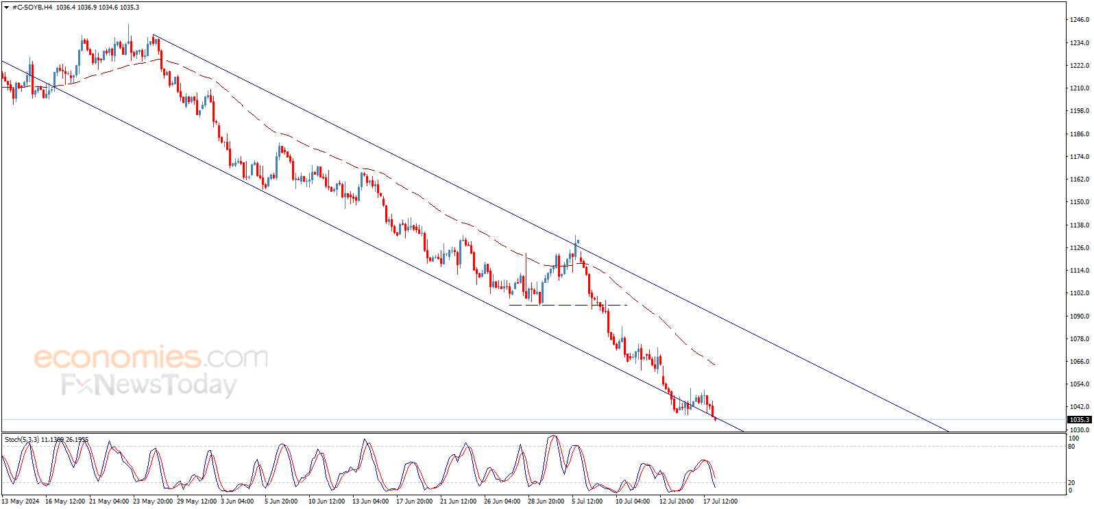 يبدأ سعر فول الصويا تداولات اليوم بسلبية ملحوظة ليهاجم دعم القناة الهابطة ويحاول تأكيد كسره، ليتجه نحو استئناف الاتجاه الرئيسي الهابط من جديد، في طريقه لتحقيق أهداف سلبية تصل إلى حاجز 1000.00$ دولار.