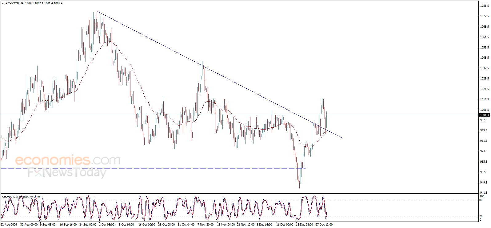 قدّم سعر فول الصويا تداولات سلبية ملحوظة يوم الجمعة الماضي ليعيد اختبار المقاومة المخترقة التي تظهر بالرسم البياني، والتي شكّلت دعم قوي عند 990.00$، ليرتد صعوداً مع افتتاح اليوم ويتجه نحو استئناف الاتجاه الصاعد المتوقع على المدى اللحظي والقصير، تحفّزه إيجابية مؤشر ستوكاستيك، بانتظار زيارة مستويات 1015.00$ ثم 1030.00$ كمحطات رئيسية تالية.