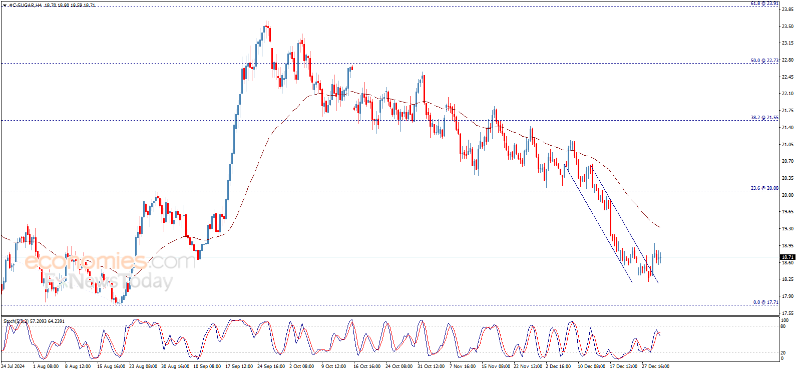 تستقر تداولات سعر السكر حول مستوى 18.70$، بانتظار جمع عزم إيجابي يساهم بدفع السعر لاستئناف الاتجاه الصاعد المتوقع للفترة القادمة، والذي يستهدف مستويات 19.40$ ثم 20.08$ كمحطات رئيسية تالية.