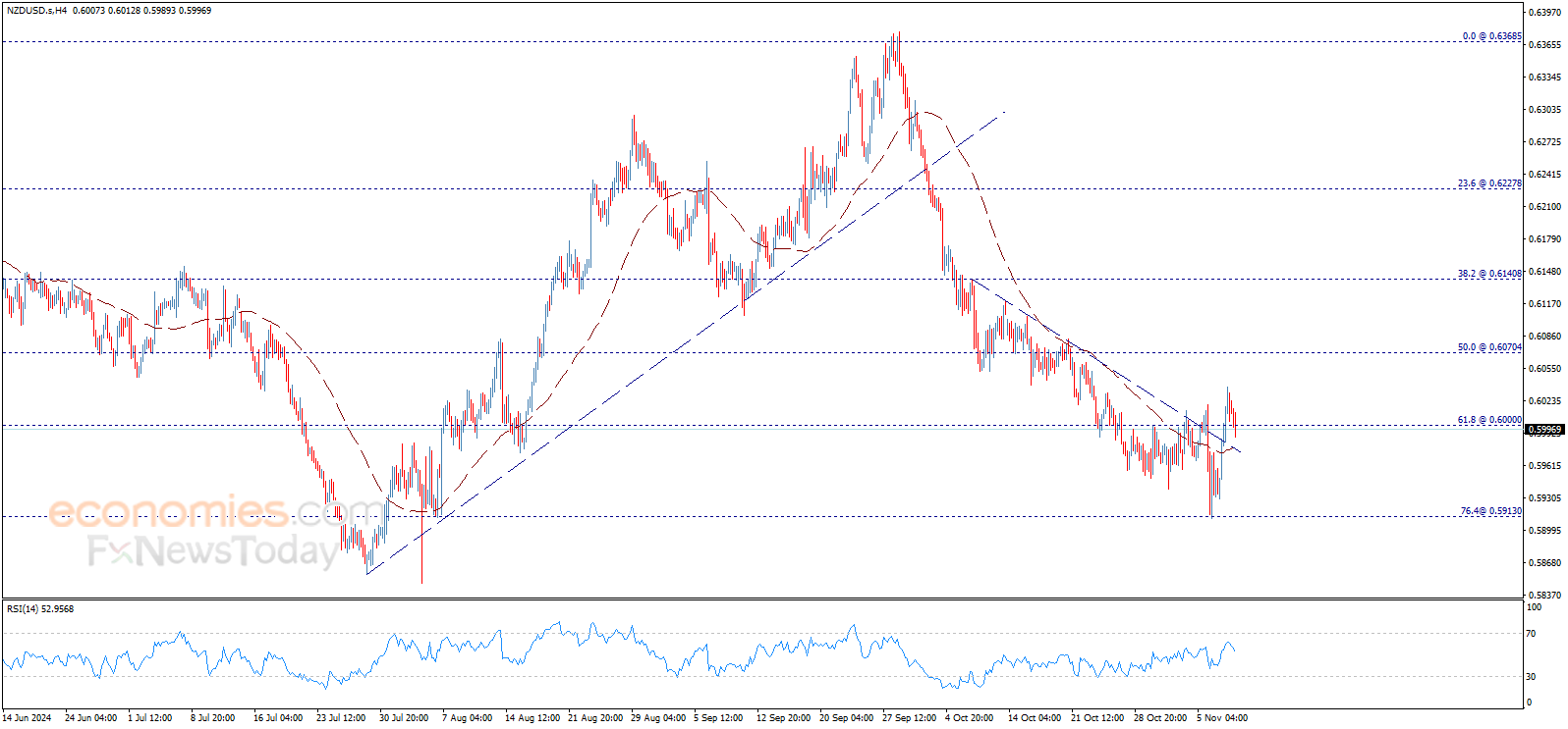 وبالتالي، سيكون الميل الهابط متوقعاً لهذا اليوم ما لم يتماسك السعر فوق مستوى 0.6000$ ويتخطّى المقاومة الفرعية 0.6025$.