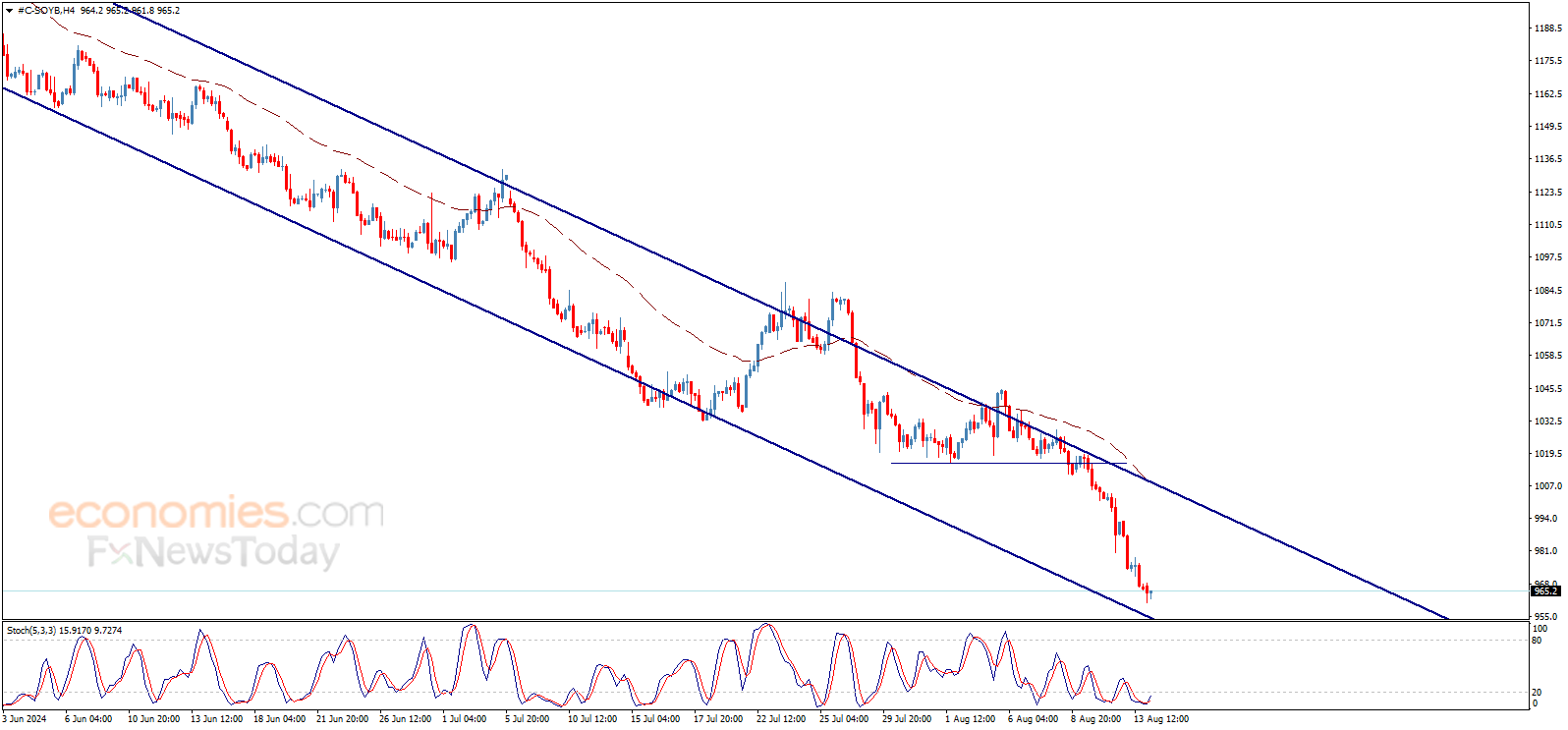 يظهر سعر فول الصويا مزيد من الانخفاض ليقترب من الهدف الجديد المنتظر عند 958.00$، ويستمر بالتحرّك داخل القناة الهابطة التي تدعم استمرار سيطرة الاتجاه الهابط، مع الإشارة إلى أن كسر المستوى المذكور سيدفع السعر نحو 945.00$ كمحطة سلبية تالية.