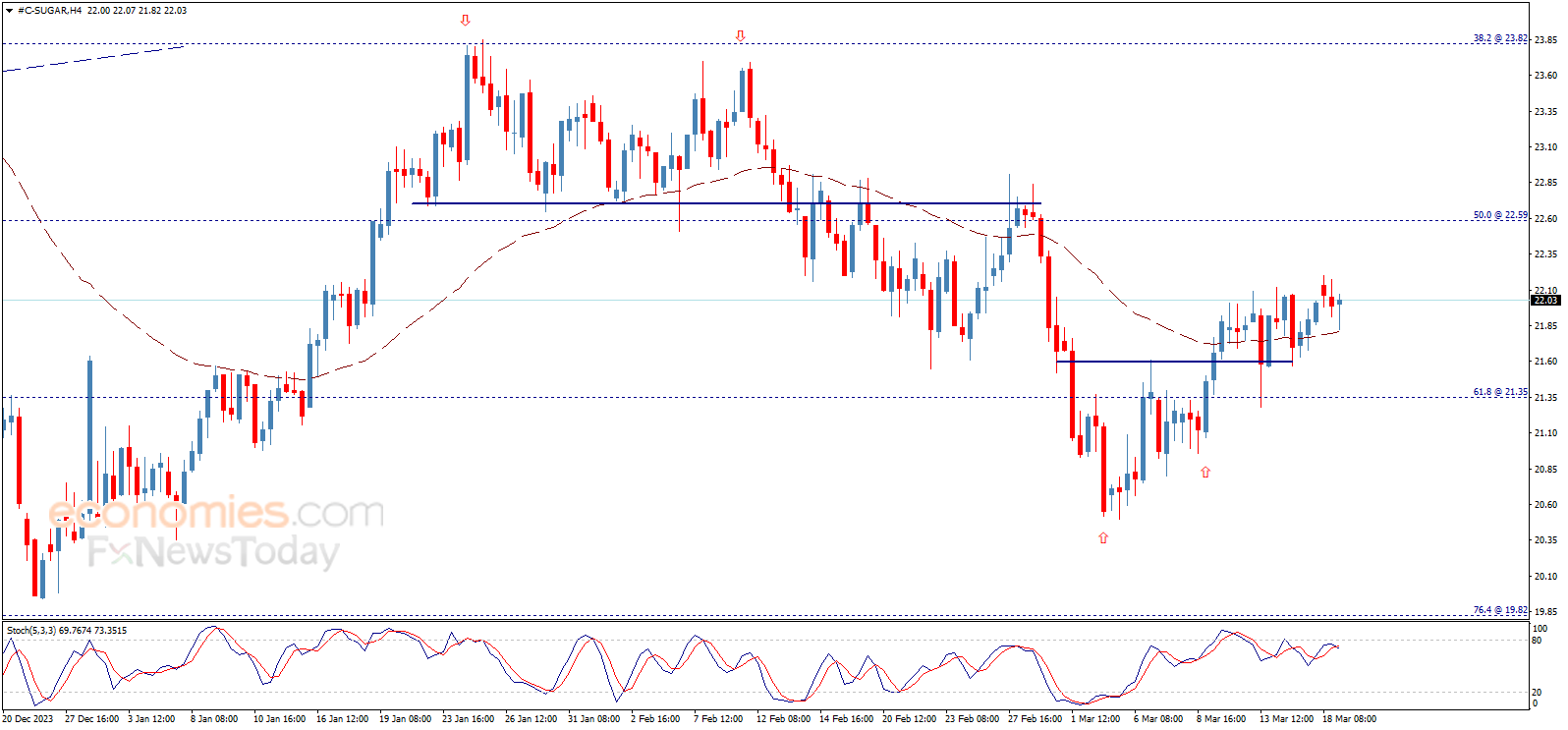 قدّم سعر السكر تداولات إيجابية جديدة يوم أمس لكنه عاد لاختبار المتوسط المتحرك 50 الذي يستمر بتشكيل دعم جيد أمام السعر، وطالما أن السعر فوق 21.35، فإن توقعاتنا للاتجاه الصاعد ستبقى قائمة على المدى اللحظي، بانتظار جمع عزم إيجابي يساهم بدفع السعر لتحقيق هدفنا الرئيسي المتوقع عند 22.60.