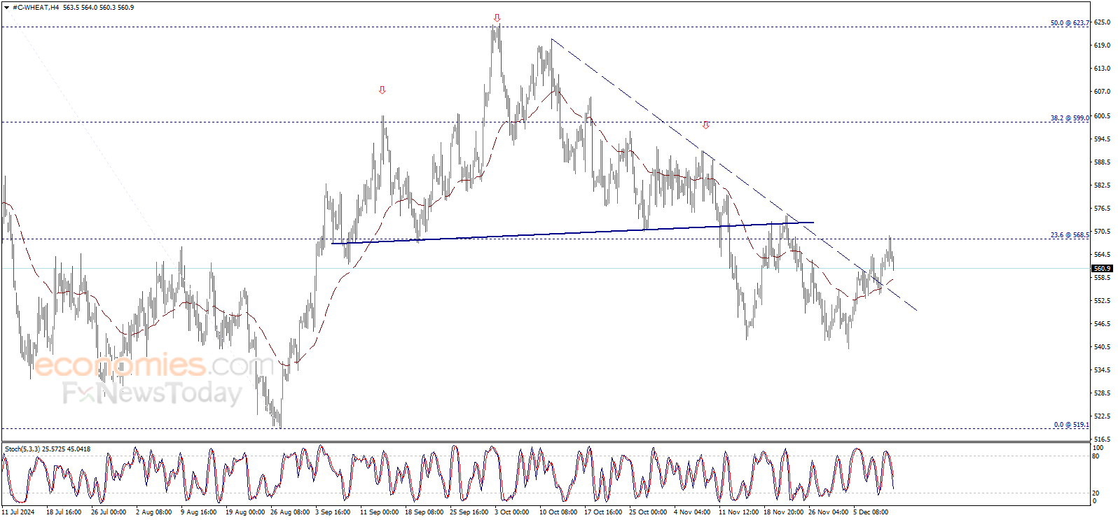 أجرى سعر القمح اختباراً لمستوى 568.50$ وارتد هبوطاً من هناك، ليستأنف الموجة الهابطة المتوقعة للفترة القادمة، بانتظار اختبار مستوى 542.00$ مبدئياً.