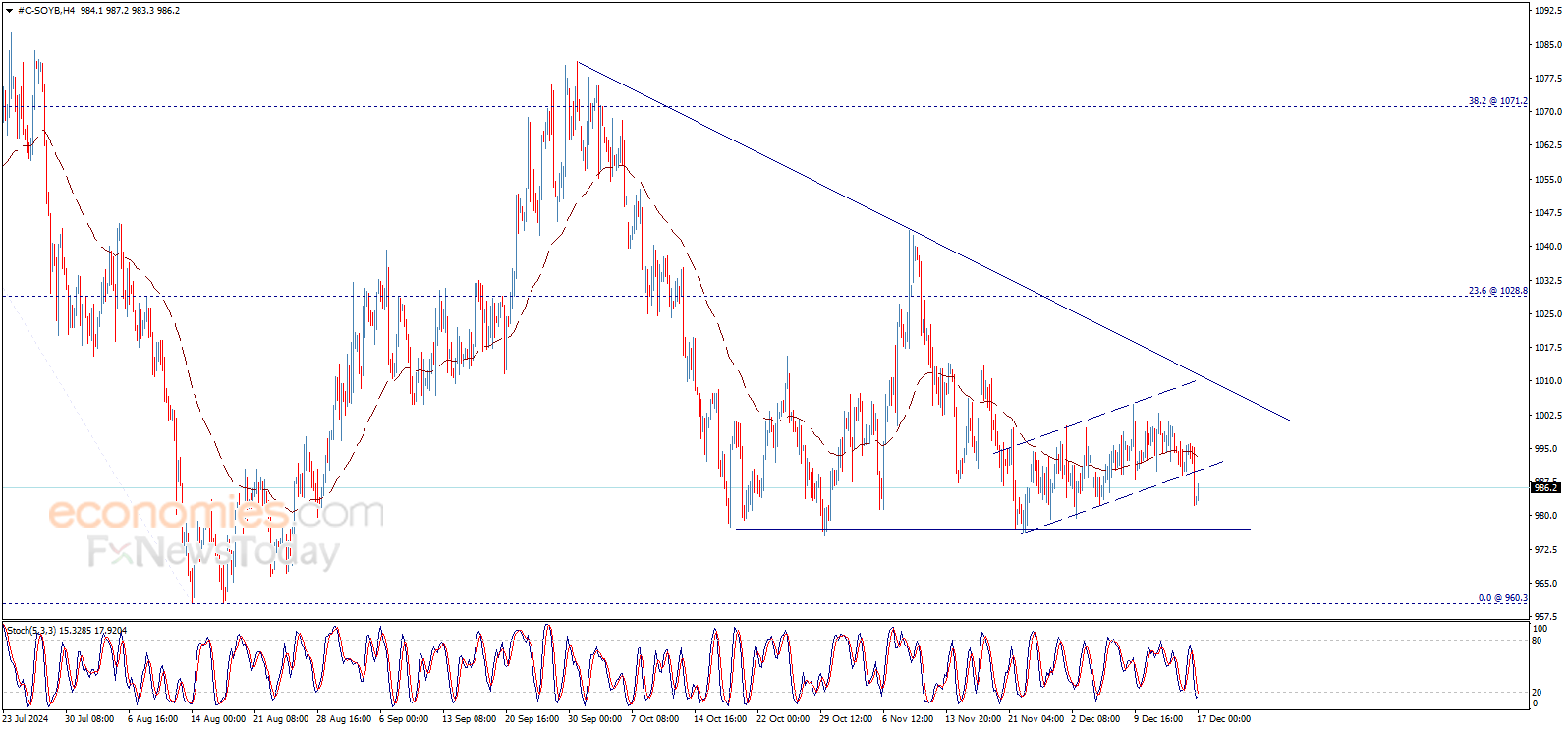 تداول سعر فول الصويا بسلبية ملحوظة يوم أمس بعد التذبذب الضيق الذي شهده مؤخراً، ليكسر دعم القناة اللحظية الصاعدة ويؤكّد استمرار سيطرة الاتجاه الهابط خلال الفترة القادمة، بانتظار زيارة مستويات 976.50$ ثم 960.30$ كمحطات رئيسية تالية.