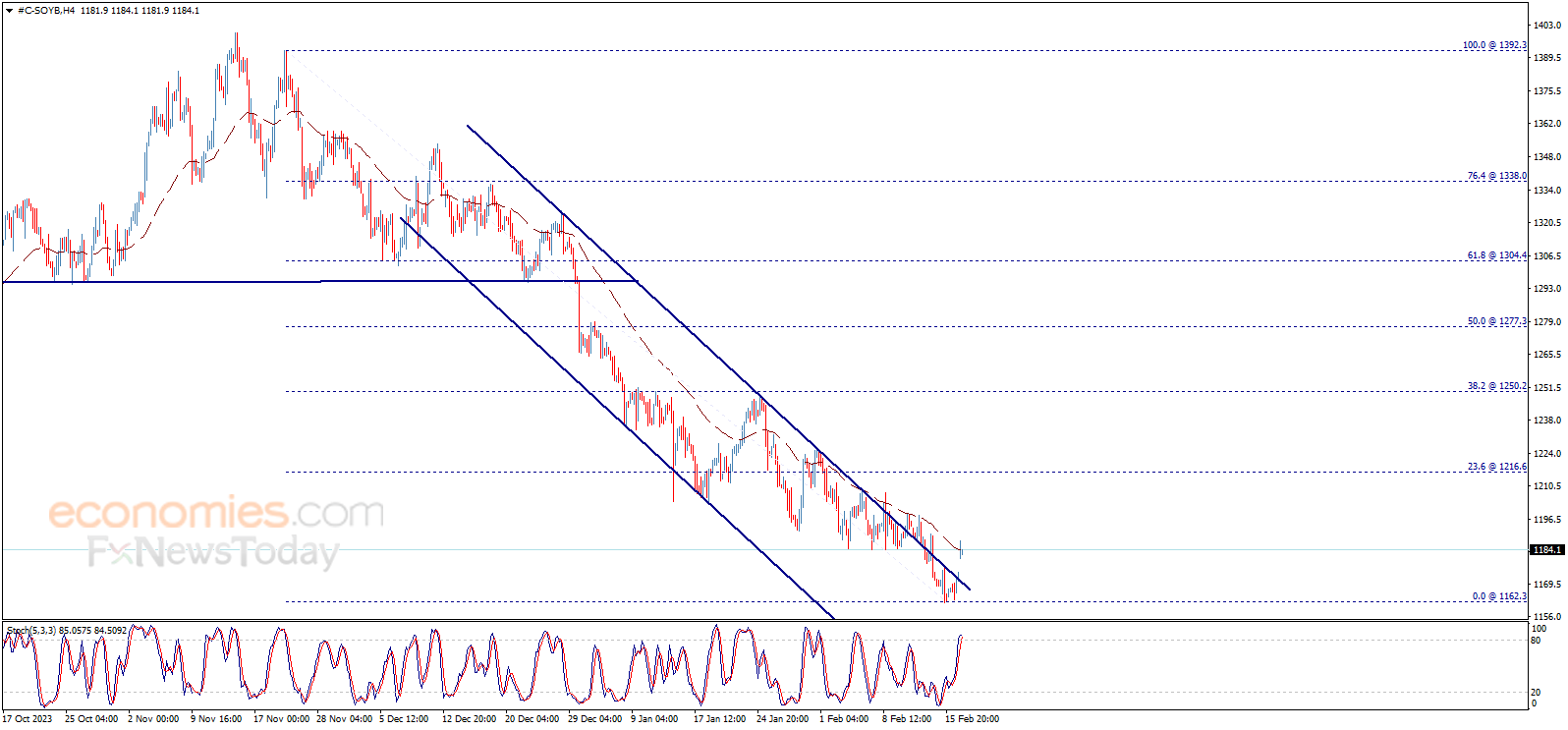 يفتتح سعر فول الصويا تداولات اليوم بإيجابية ملحوظة ليخترق مقاومة القناة الهابطة ويبدأ تصحيح صاعد للانخفاض الذي بدأ من مناطق 1392.30، في طريقه لزيارة مستوى 1216.60 كهدف تصحيحي أول.