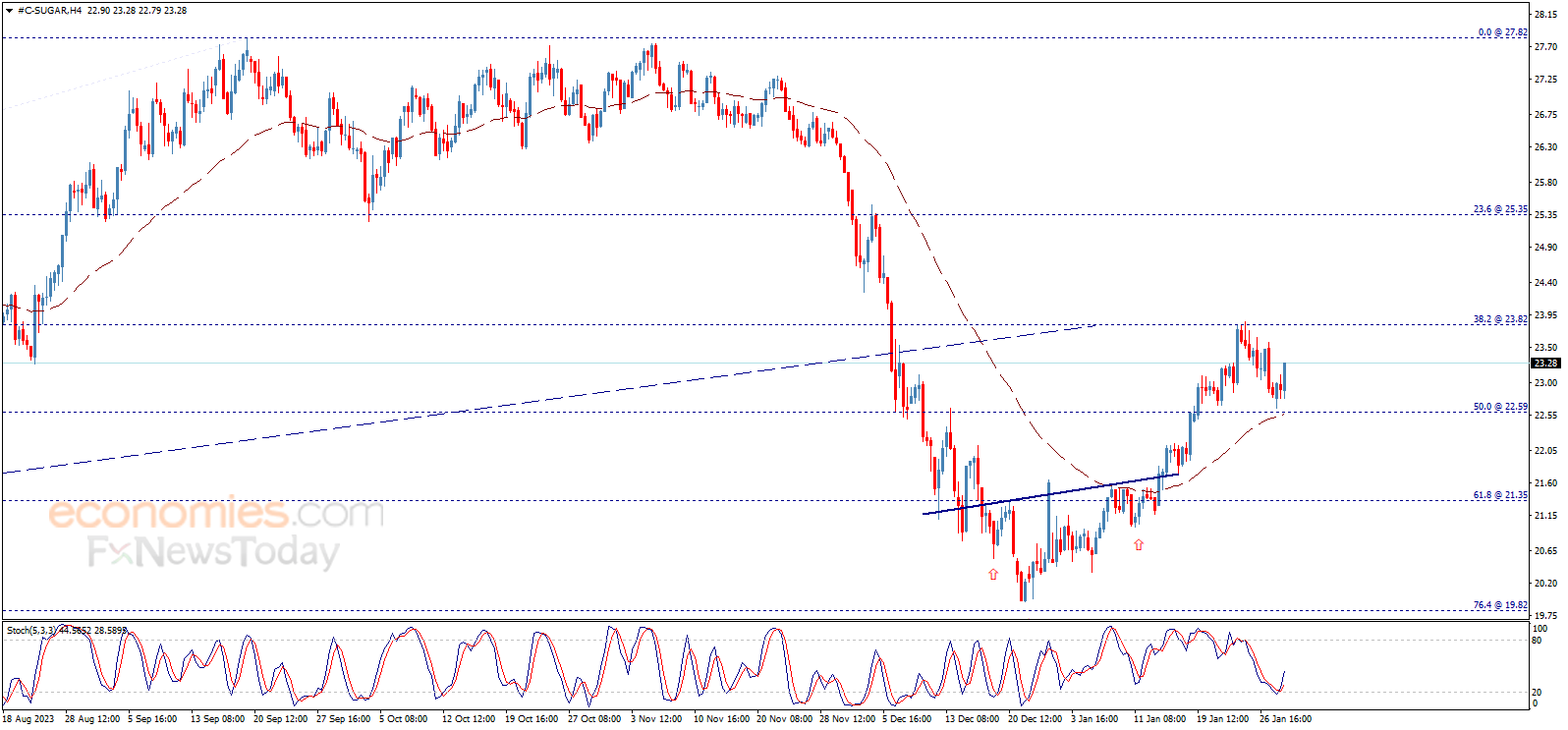 تداول سعر السكر بإيجابية ملحوظة مع نهاية تداولات يوم أمس ليقدّم إشارات على التوجه لاستئناف المسار الصاعد من جديد، والذي يتأثر بنموذج الرأس والكتفين المكتمل مسبقاً، في طريقه لاختبار مستوى 23.80 مبدئياً، مع الإشارة إلى أن اختراق هذا المستوى سيدفع السعر نحو 25.00 ثم 25.35 كمحطات إيجابية تالية.