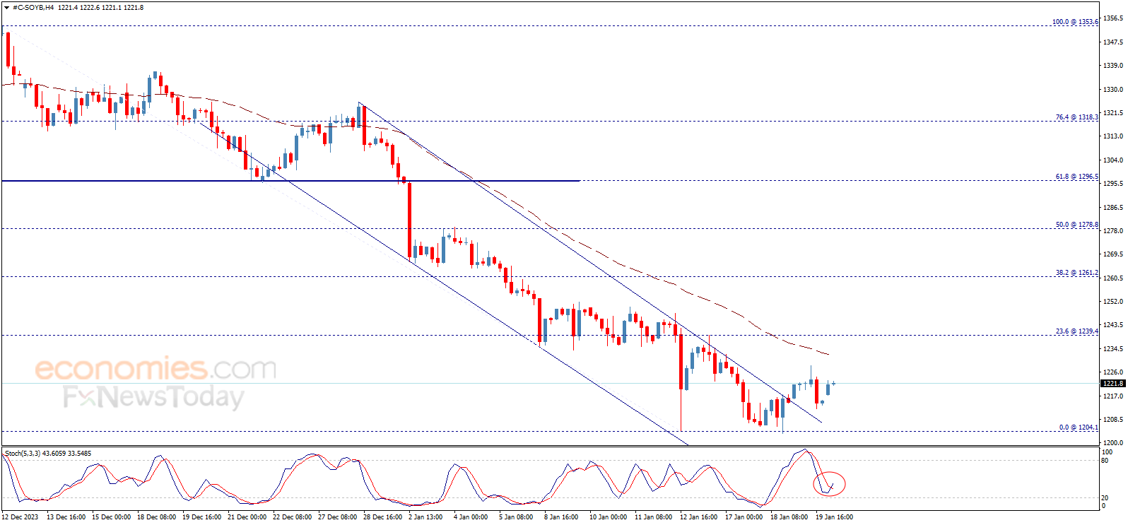 قدّم سعر فول الصويا تداولات إيجابية في الجلسات الماضية ليختبر مستوى 1228.00، بانتظار مزيد من الارتفاع لزيارة مستوى 1239.40 الذي يمثّل الهدف الإيجابي الأول المتوقع، مع التذكير بأن اختراقه سيؤكد امتداد الموجة التصحيحية الصاعدة لتصل إلى 1261.20 كمحطة تالية.