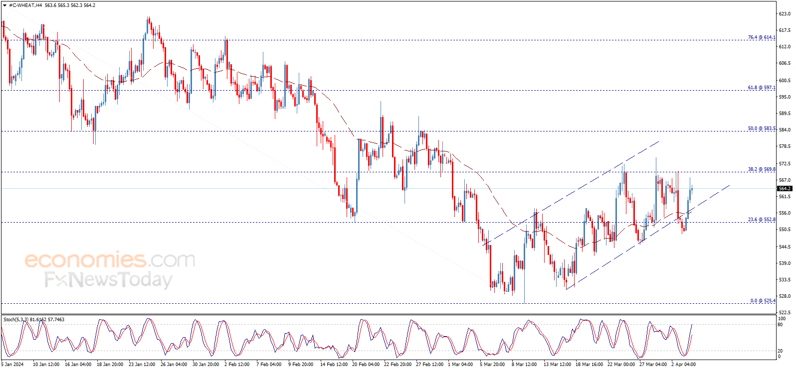 اندفع سعر القمح صعوداً يوم أمس ليخترق مستوى 552.80$ مجدداً ويصل إلى مشارف مستوى 569.80$، ليقدّم إشارات على العودة على المسار التصحيحي الصاعد، مع الإشارة إلى أن اختراق المستوى الأخير سيفتح الطريق أمام تحقيق مكاسب إضافية تصل إلى 583.50$.