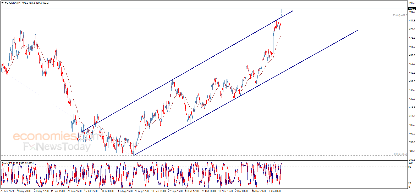 افتتح سعر الذرة تداولات اليوم بارتفاع قوي ليتجاوز هدفنا المنتظر عند 487.30$ ويفتح الطريق أمام تحقيق مزيد من المكاسب على المدى اللحظي والقصير، في طريقه لزيارة مناطق 516.00$ كمحطة رئيسية تالية.