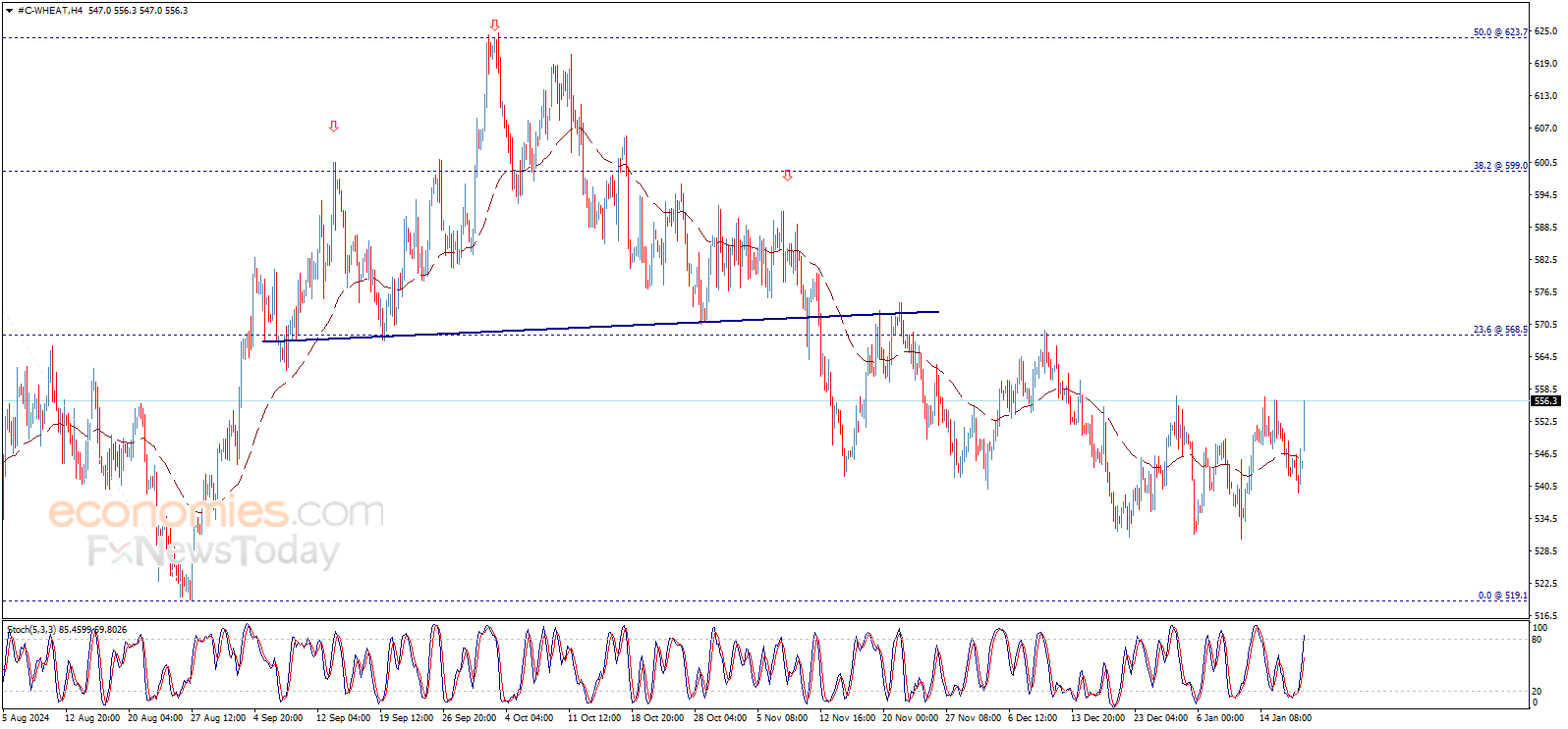 افتتح سعر القمح تداولات اليوم بارتفاع قوي ليخترق مستوى 548.40$ ويستقر فوقه من جديد، ليتجه نحو تحقيق مكاسب متوقعة خلال الجلسات القادمة، مستهدفاً مستوى 568.50$ بشكل رئيسي.