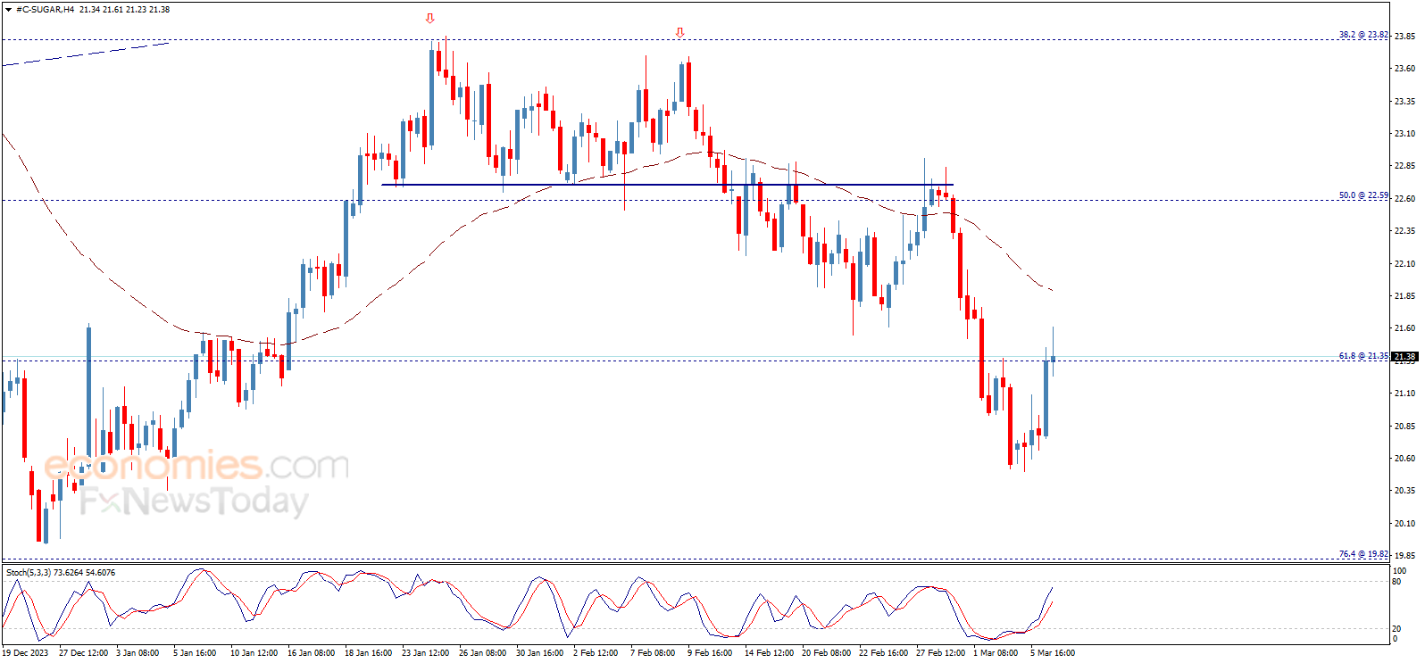 أنهى سعر السكر تداولات يوم أمس بإيجابية ملحوظة، ليهاجم مستوى 21.35 ويحاول تأكيد اختراقه، مما يجعلنا نفضّل التوقف على الحياد إلى أن يؤكد السعر موقفه بالنسبة لهذا المستوى ومن ثم تحديد وجهته التالية بشكل أدق.