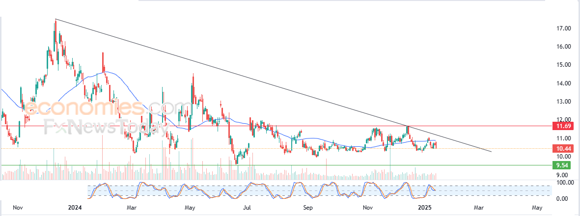 لهذا تشير توقعاتنا إلى المزيد من الهبوط لسعر السهم خلال تداولاته القادمة، طيلة ثبات مستوى المقاومة 11.69$، ليستهدف مستوى الدعم المحوري 9.54$.