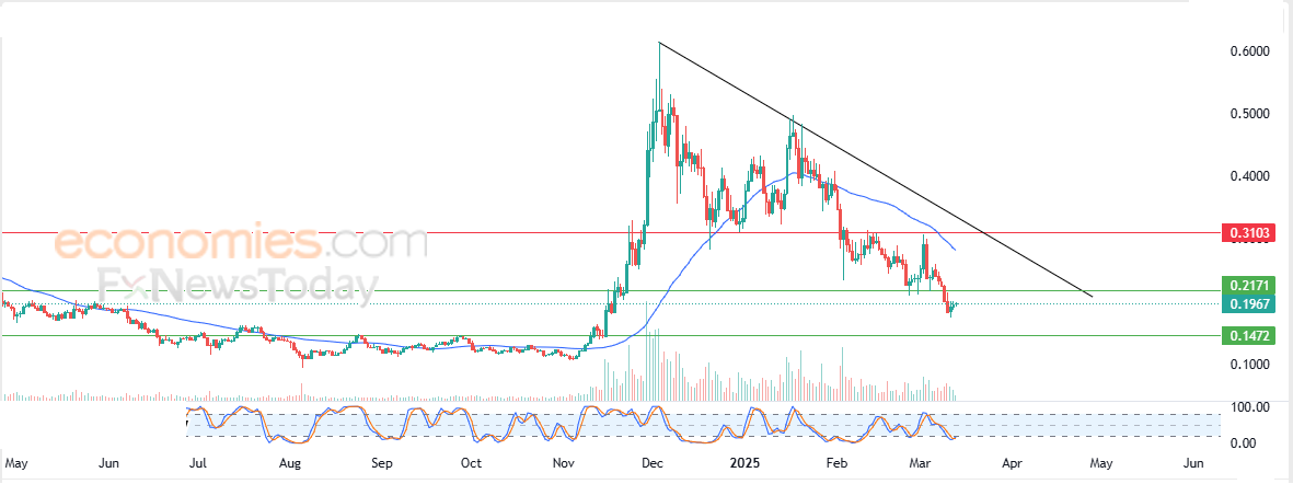 لهذا فتوقعاتنا تشير إلى انخفاض سعر العملة من جديد خلال تداولاته القادمة، طيلة استقراره دون مستوى 0.2171$، ليستهدف أولى مستويات الدعم عند سعر 0.1472$.