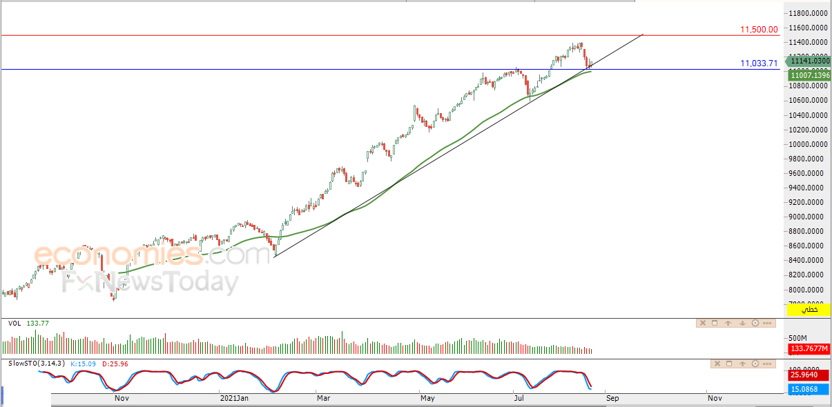 نطاق التداول المتوقع لهذا اليوم ما بين مستوى الدعم 11,000 ومستوى المقاومة 11,300.