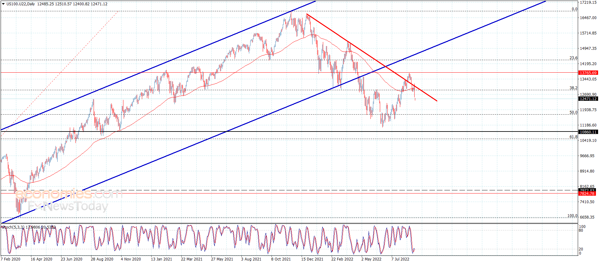 أكد سعر المؤشر استسلامه لسيطرة الميل الهابط بتحقيقه لكسر الدعم المتمركز قرب 12950.00 لنلاحظ تكبده بذلك لخسائر كبيرة بوصوله نحو الهدف السلبي المتمركز عند 12440.00.
