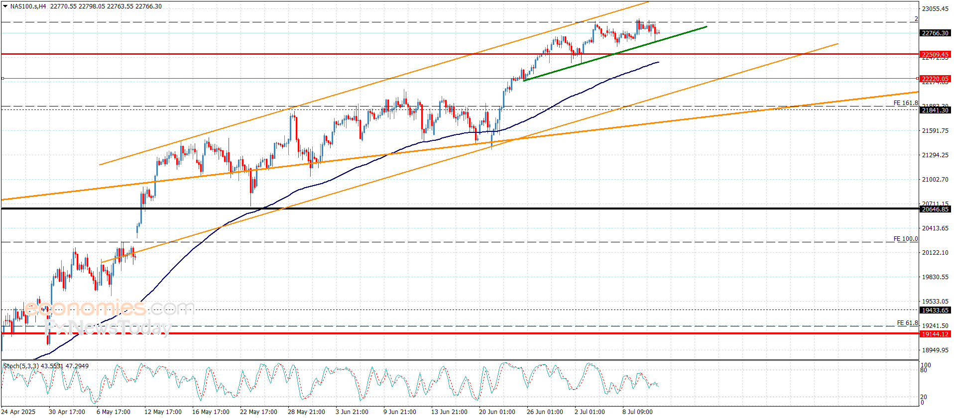 استسلم سعر المؤشر لثبات الحاجز المستقر عند 22900.00 ليضطر لتأجيل الهجوم الصاعد وتقديم تداولات تصحيحية هابطة باستهدافه للدعم الإضافي الممتد نحو 22655.00 كما هو واضح بالرسم المرفق.