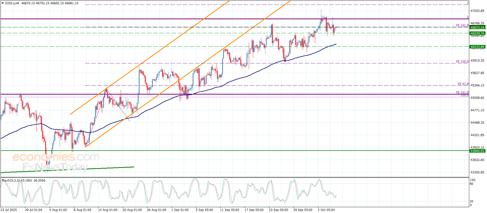 سعر مؤشر الداو جونز يستقر دون الحاجز-توقعات اليوم 8-10-2025