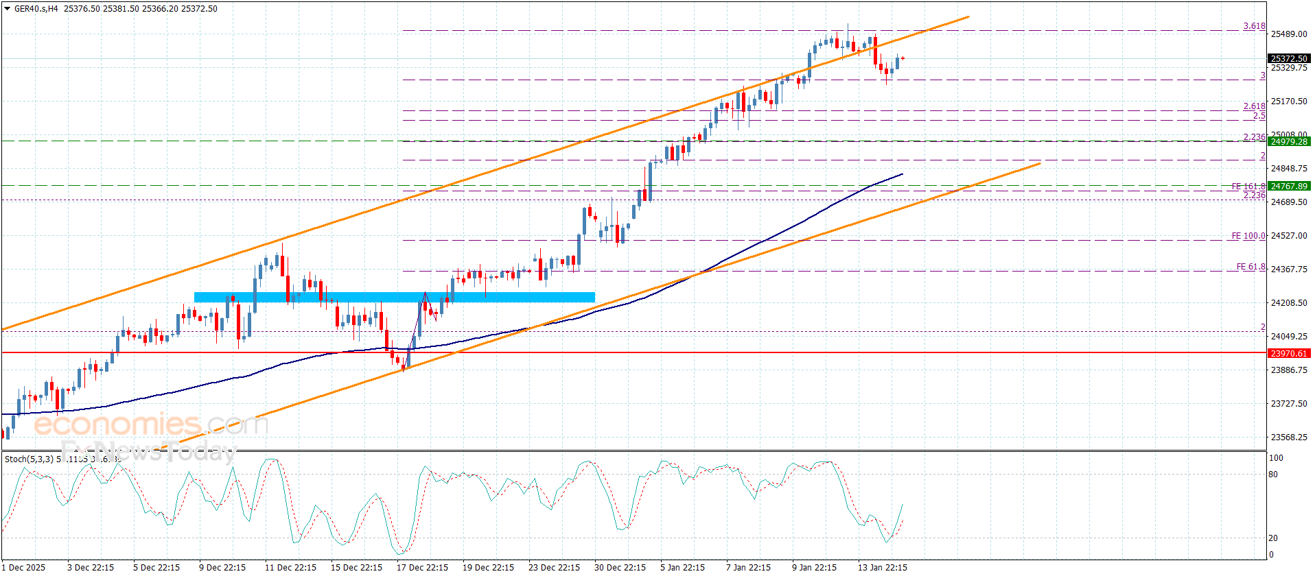 نتوقع باستمرار تجميع السعر للعزم الإيجابي خلال تداولات هذا اليوم وبصموه فوق الدعم الإضافي المذكور سابقا، البدء بتشكيل موجات صاعدة جديدة ليحاول الضغط على مستوى 25460.00 وبتجاوزه قد ينجح بتسجيل مكاسب تاريخية جديدة باندفاعه نحو 25585.00 و25710.00 على التوالي.