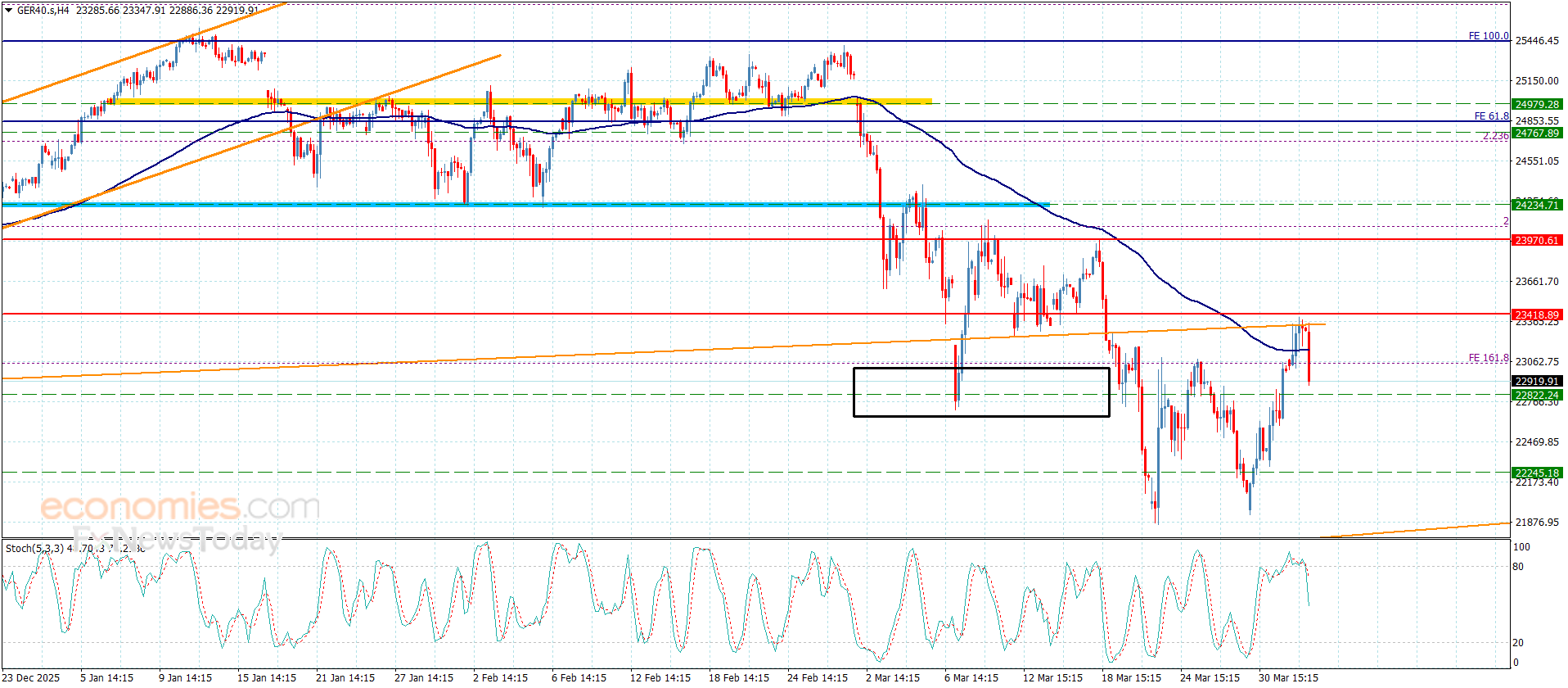 الثبات المتكرر دون 23060.00 وبتقديم المؤشرات الرئيسية للعزم السلبي سيزيد ذلك من فرص استئناف السعر للهجوم السلبي لنتوقع تسلله قريبا نحو 22710.00 وباستمرار الضغوط السلبية قد تمتد التداولات نحو 22480.00, أما تفعيل الهجوم الصاعد فإن ذلك يشترط على السعر الثبات لمدة أربع ساعات فوق مستوى 23420.00.