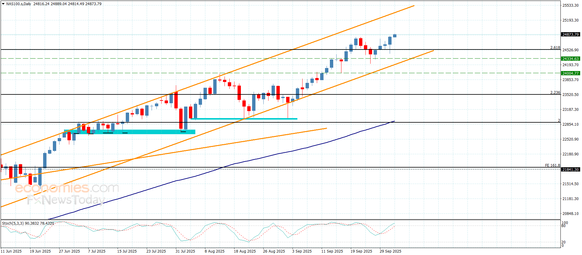 نجح سعر المؤشر بالتخلص من الضغوط السلبية اللحظية بتقديمه يوم أمس لإغلاق إيجابي جديد فوق الدعم الإضافي المتمركز عند 24330.00 ومن ثم ليشكل اندفاع صاعد قوي ليبدأ بتسجيل مكاسب تاريخية جديدة بوصوله حاليا نحو 24890.00.