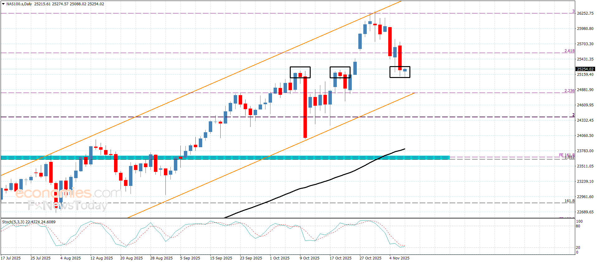 نطاق التداول المتوقع لهذا اليوم ما بين 24910.00 و 25420.00
