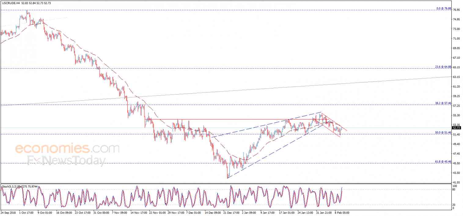 وبالتالي، فإن هذه العوامل تشجعنا على الاستمرار بترجيح الاتجاه الهابط خلال الجلسات القادمة، بانتظار كسر 51.46 لتأكيد التوجه نحو 50.00 كهدف تالي، مع الأخذ بعين الاعتبار أن استمرار الموجة الهابطة يعتمد على الثبات دون 53.50 والأهم دون 54.40.