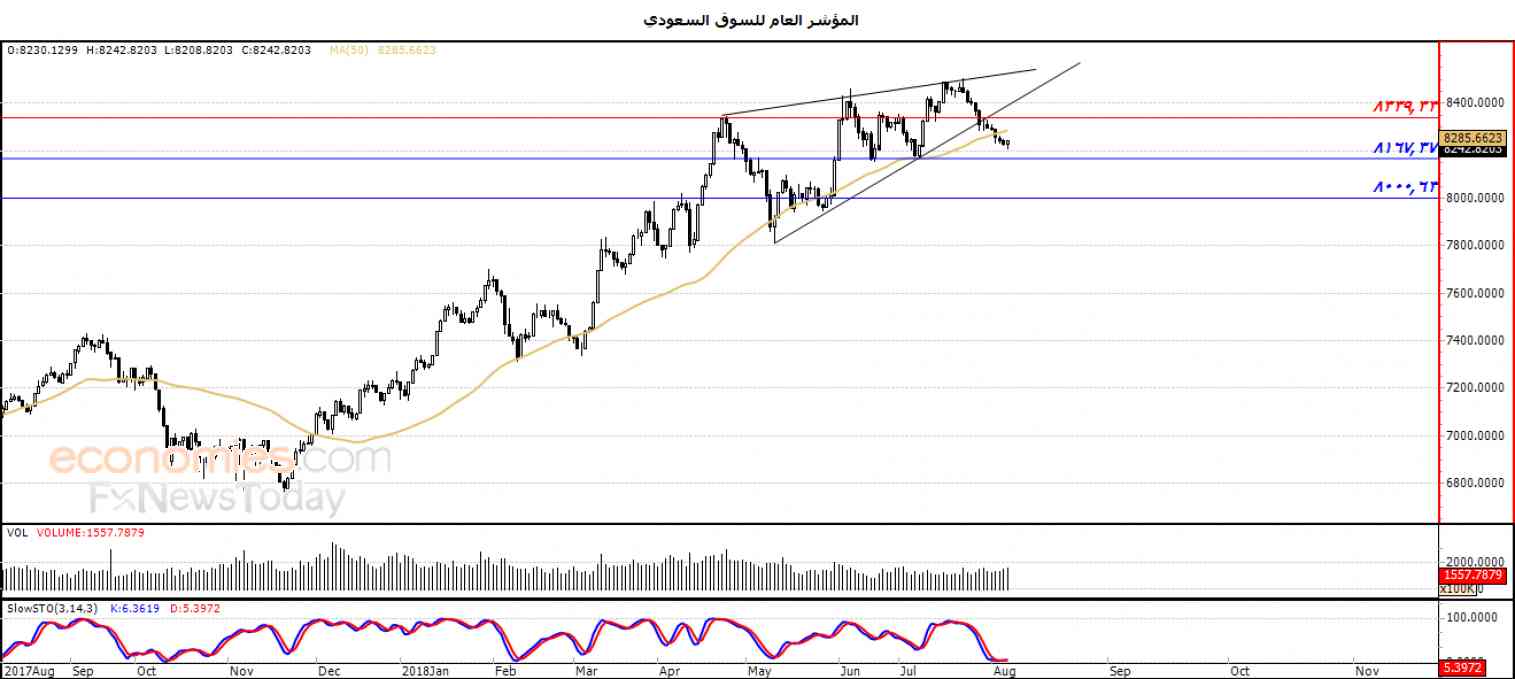 ولهذا نحن نرجح عودة انخفاض المؤشر خلال تداولاته القادمة ، طيلة ثبات المقاومة 8339.33 ، ليستهدف مستوى الدعم 8167.37 استعداداً لكسره .