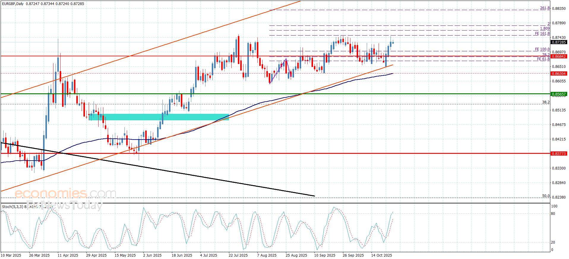 سعر اليورو مقابل الباوند يتمسك بالإيجابية– توقعات اليوم 27-10-2025