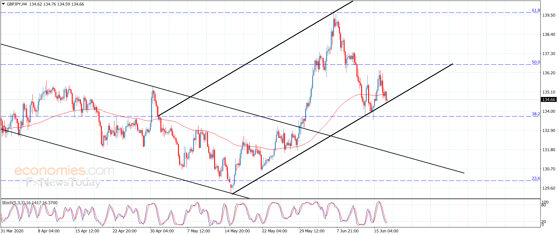 أما استمرار تعرض السعر للضغوط السلبية وتسلله دون الدعم الحالي, فإن ذلك سيجبره على الانتقال لمسار سلبي جديد ليتيح ذلك فرص الهبوط نحو 133.65 وصولا نحو 131.60 خلال الفترة القادمة.