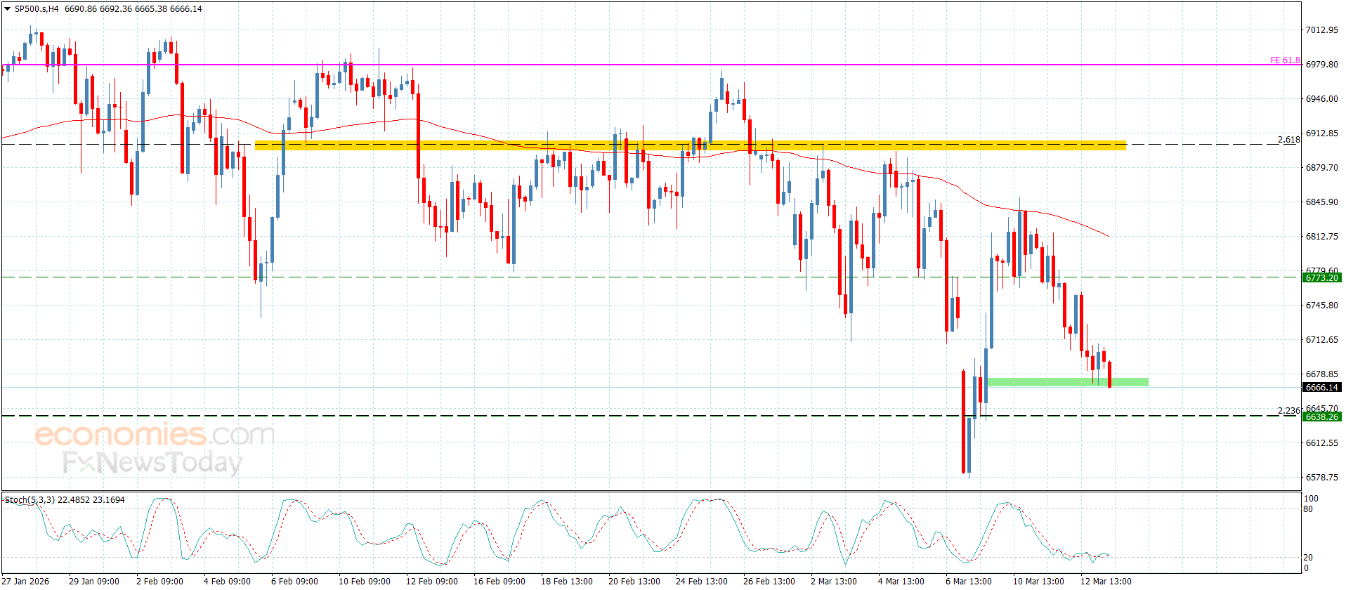 سعر مؤشر ستاندرد آند بورز يقترب من دعم مهم-توقعات اليوم 13-3-2026