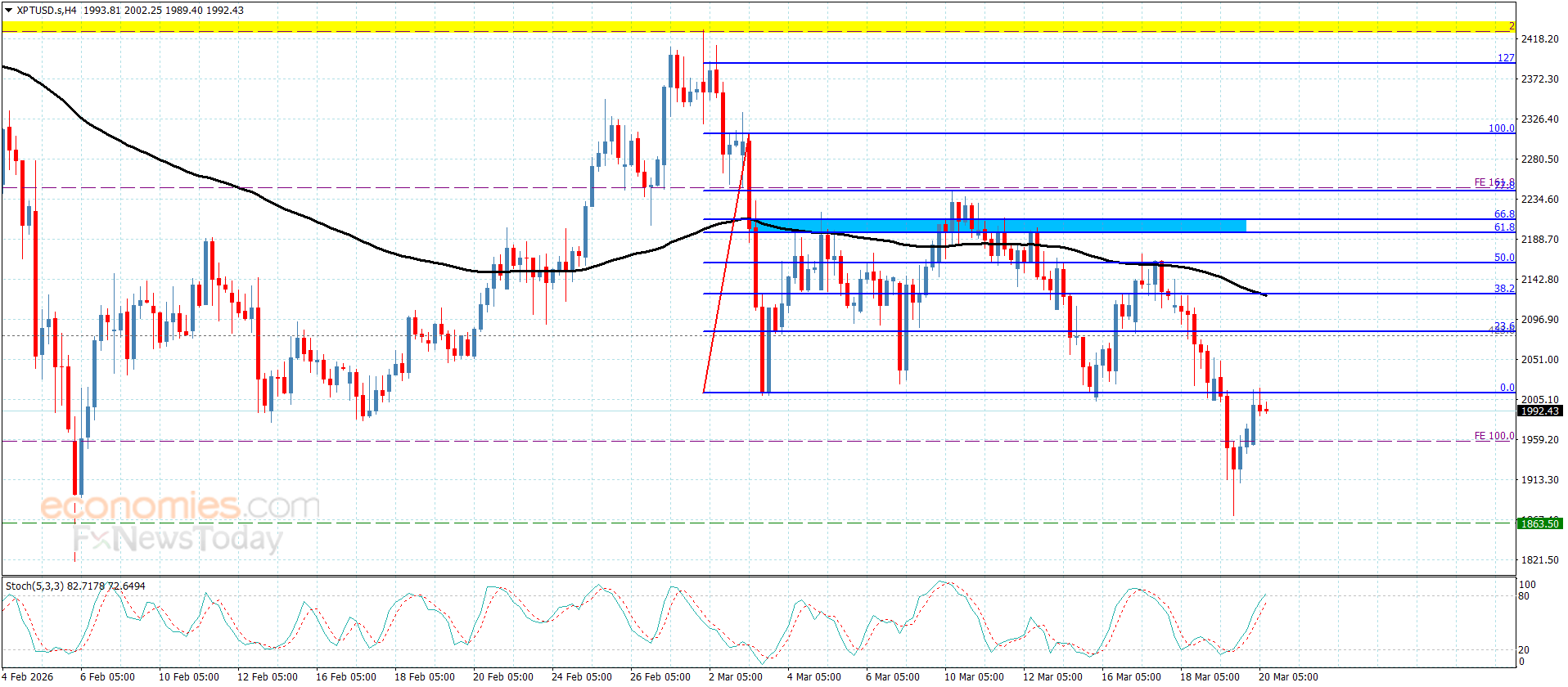 استأنف سعر البلاتين بتداولات يوم أمس الهجوم السلبي المقترح سابقا لنلاحظ تجاوزه للمحطات السلبية المقترحة ليتكبد بذلك خسائر كبيرة بملامسته لمستوى 1872.00$ ومن ثم ليشكل ارتداد إيجابي سريع محاولا تعويض بعض الخسائر باستهدافه لمستوى 2015.00$.