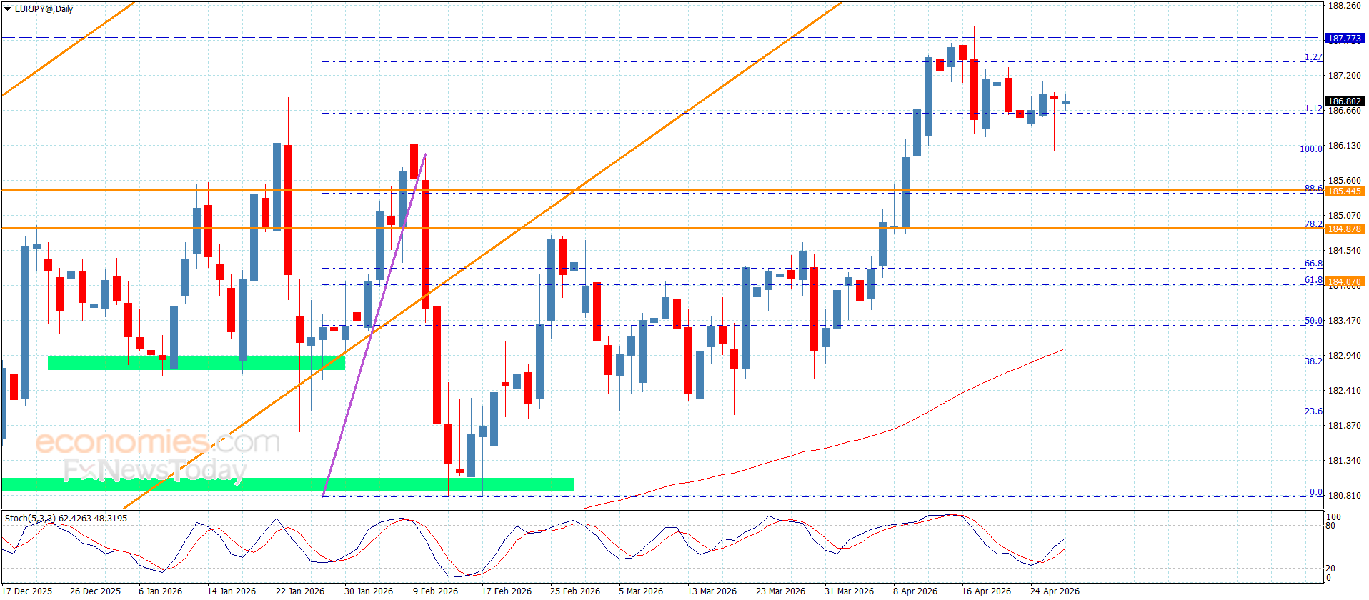 نطاق التداول المتوقع لهذا اليوم ما بين 186.40 و 187.75