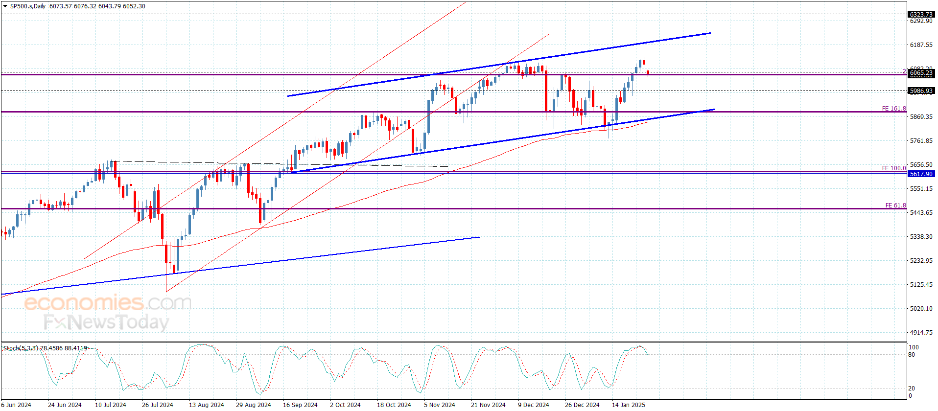 افتتح سعر المؤشر تداولات هذا اليوم بفجوة سلبية ليستقر من خلالها قرب الدعم الإضافي المستقر عند 6065.00 معلنا تأجيل المحاولات الصاعدة للفترة الحالية نتيجة لمحاولة خروج مؤشر ستوكاستيك من مستوى تشبع الشراء ليزيد بدوره الضغوط السلبية على تداولات هذا اليوم.