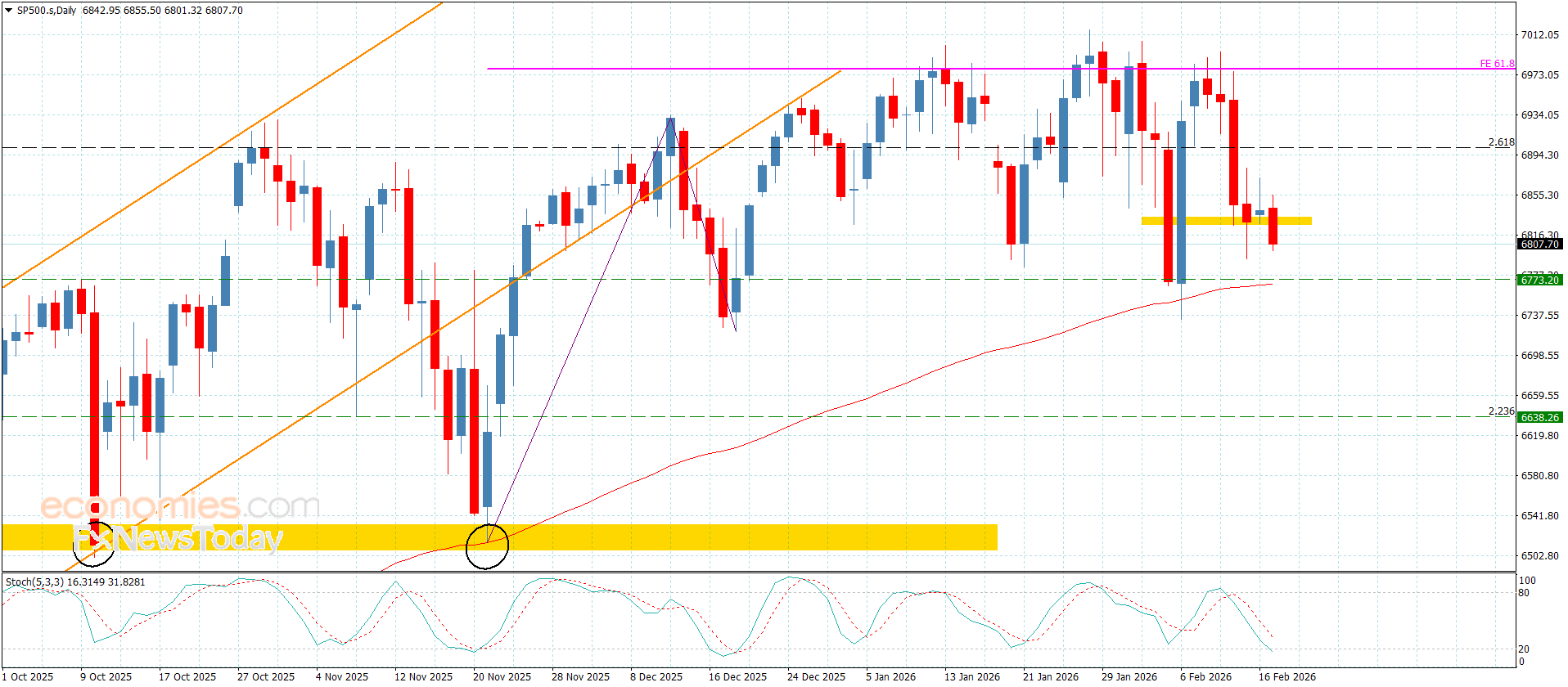تعرض سعر المؤشر لضغوط سلبية جديدة ليجبره ذلك على الهبوط دون الدعم الإضافي المستقر عند 6825.00 ليتفاعل مع سلبية مؤشر ستوكاستيك ولنلاحظ تذبذبه حاليا قرب 6800.00.