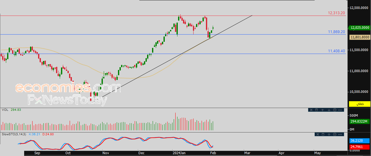 نطاق التداول المتوقع لهذا اليوم ما بين مستوى الدعم 11,700.00 ومستوى المقاومة 12,313.20.