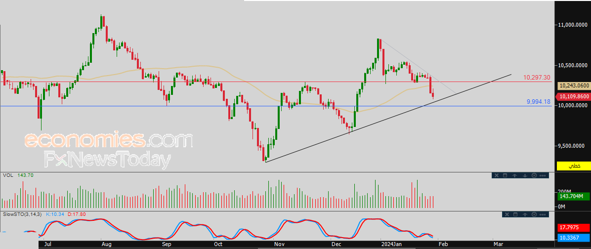 نطاق التداول المتوقع لهذا اليوم ما بين مستوى الدعم 9,994.20 ومستوى المقاومة 10,300.00.
