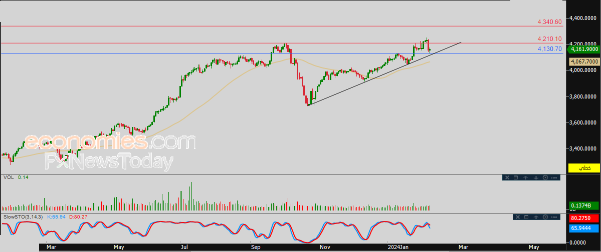 نطاق التداول المتوقع لهذا اليوم ما بين مستوى الدعم 4,080.00 ومستوى المقاومة 4,300.00.