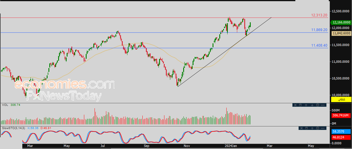نطاق التداول المتوقع لهذا اليوم ما بين مستوى الدعم 11,870.00 ومستوى المقاومة 12,313.20.
