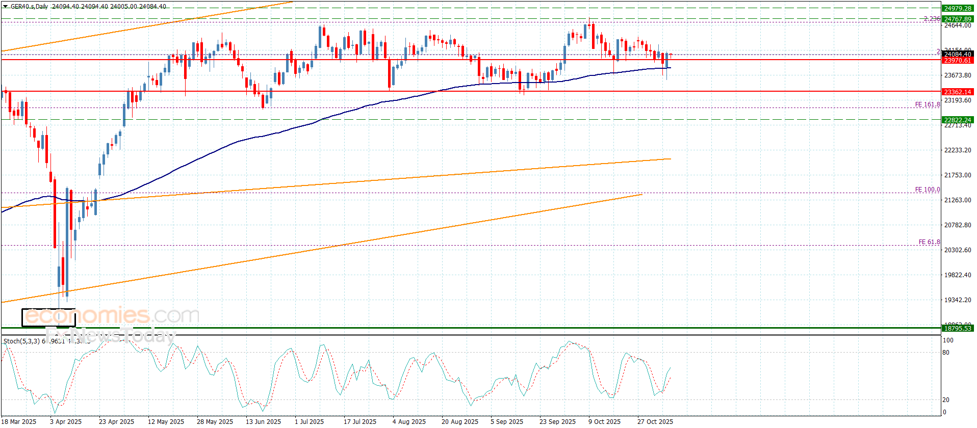 سعر المؤشر الألماني يستغل إيجابية المتوسط المتحرك 55– توقعات اليوم 6-11-2025