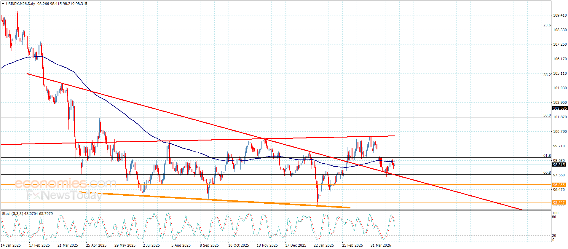 سعر مؤشر الدولار الأمريكي يستقر دون المتوسط المتحرك– توقعات اليوم 28-4-2026