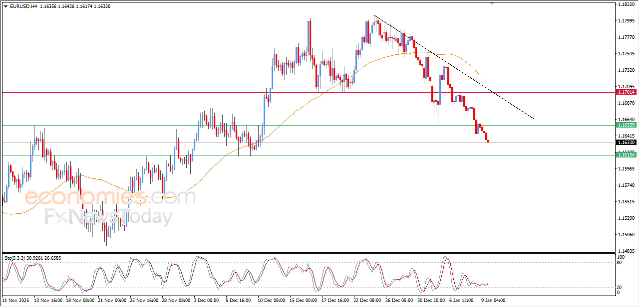 شهد سعر اليورو مقابل الدولار (EURUSD) حركة متذبذبة شديدة خلال تداولاته اللحظية الأخيرة، اقترب بها الزوج من الاستناد لمستوى الدعم 1.1615، وهو الدعم الذي كنا هدفاً سعرياً لنا بتحليلاتنا السابقة، وسط استمرار الضغط السلبي نتيجة تداولاته دون متوسطه المتحرك البسيط لفترة 50، وتحت سيطرة الاتجاه التصحيحي الهابط على المدى القصير، ولكن في المقابل من ذلك تتوارد الإشارات الإيجابية من مؤشرات القوة النسبية، وهو ما أدى إلى تلك الحركة المتذبذبة.