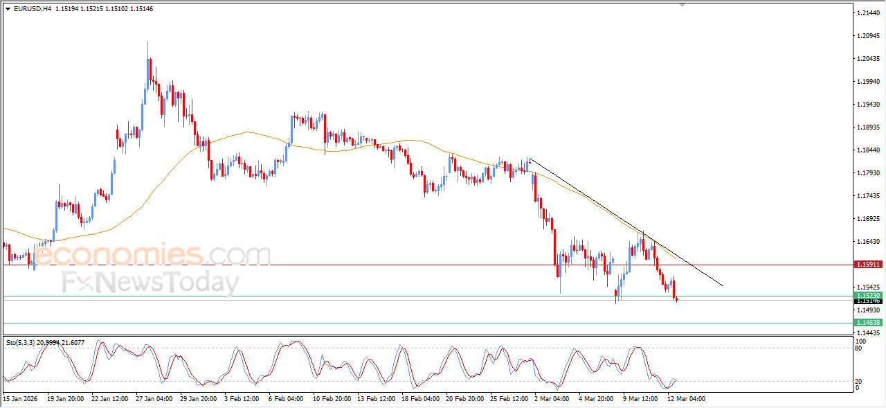 واصل سعر اليورو مقابل الدولار (EURUSD) الهبوط خلال تداولاته اللحظية الأخيرة، ليتخطى بانخفاضه الأخير مستوى الدعم 1.1520، هذا الدعم الذي كان هدفاً سعرياً لنا بتحليلاتنا الصباحية، وسط سيطرة الاتجاه الرئيسي الهابط مع تحركاته بمحاذاة خط ميل فرعي، مع استمرار الضغط السلبي نتيجة تداولاته دون متوسطه المتحرك البسيط لفترة 50، كما نلاحظ في الخلفية من ذلك بدء ظهور تقاطع سلبي بمؤشرات القوة النسبية، بعدما تمكن الزوج من تصريف تشبعه البيعي بها.