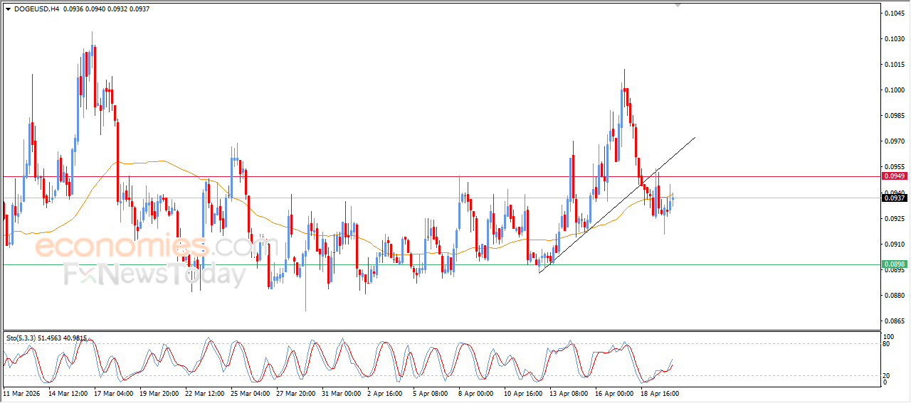 لهذا فتوقعاتنا تميل نحو هبوط سعر العملة الرقمية خلال تداولاته اللحظية القادمة، طيلة ثبات مستوى المقاومة 0.0950$، ليستهدف مستوى الدعم 0.0900
