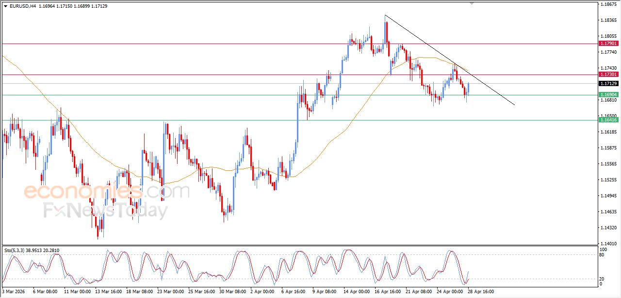 قفز سعر اليورو مقابل الدولار (EURUSD) ارتفاعاً خلال تداولاته اللحظية الأخيرة، وذلك على اثر تماسك مستوى الدعم 1.1690، ما أكسب الزوج بعضاً من الزخم الإيجابي الذي ساعده على تحقيق تلك المكاسب، والذي يأتي مع بدء توارد الإشارات الإيجابية من مؤشرات القوة النسبية، بعد وصولها لمناطق شديدة التشبع بعمليات البيع، ولكن بالرغم من تلك المكاسب إلا أن الزوج يظل يعاني من الضغط السلبي الناتج من تداولاته دون متوسطه المتحرك البسيط لفترة 50، ما يقلص من فرص تعافي في الفترة القريبة القادمة، خاصة مع سيطرة موجة تصحيحية هابطة على المدى القصير، وتحركاته بمحاذاة خط ميل داعم لهذا المسار.