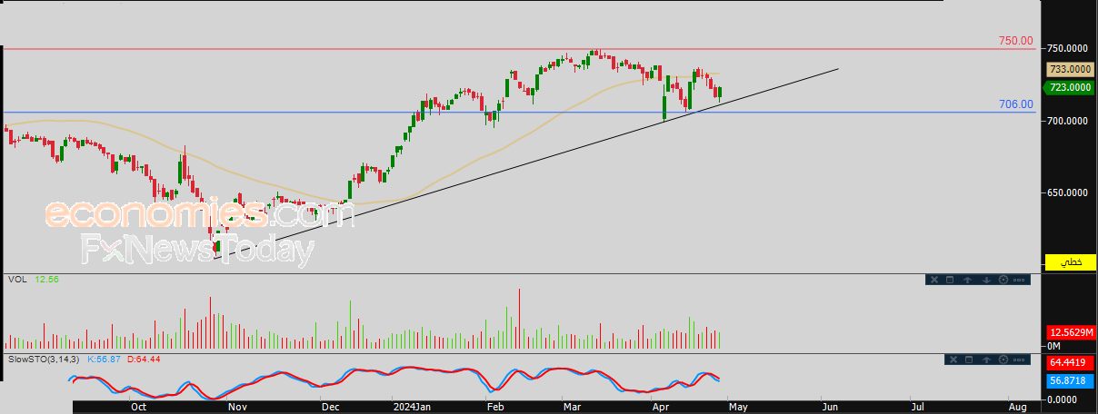 لذلك نحن نتوقع المزيد من الصعود لسعر السهم خلال تداولاته القادمة، بشرط ثبات مستوى الدعم 706.00، ليستهدف من جديد مستوى المقاومة المحوري 750.00.