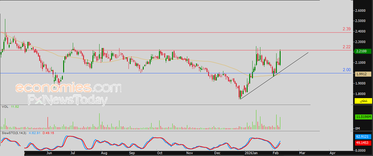 لذلك فتوقعاتنا تشير إلى صعود سعر السهم خلال تداولاته القادمة، خاصة في حالة اختراقه للمقاومة المذكورة 2.22 ريال، ليستهدف بعدها مقاومته التالية عند سعر 2.40 ريال.